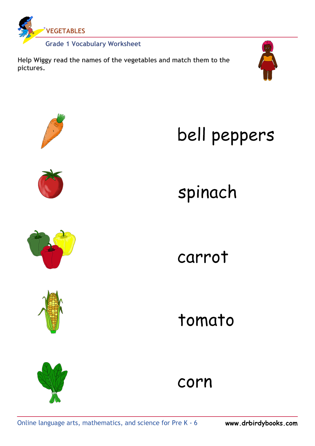 This worksheet is designed to introduce Grade 1 students to a variety of vegetables, helping them expand their vocabulary through engaging activities such as matching. Perfect for classroom use or home learning!