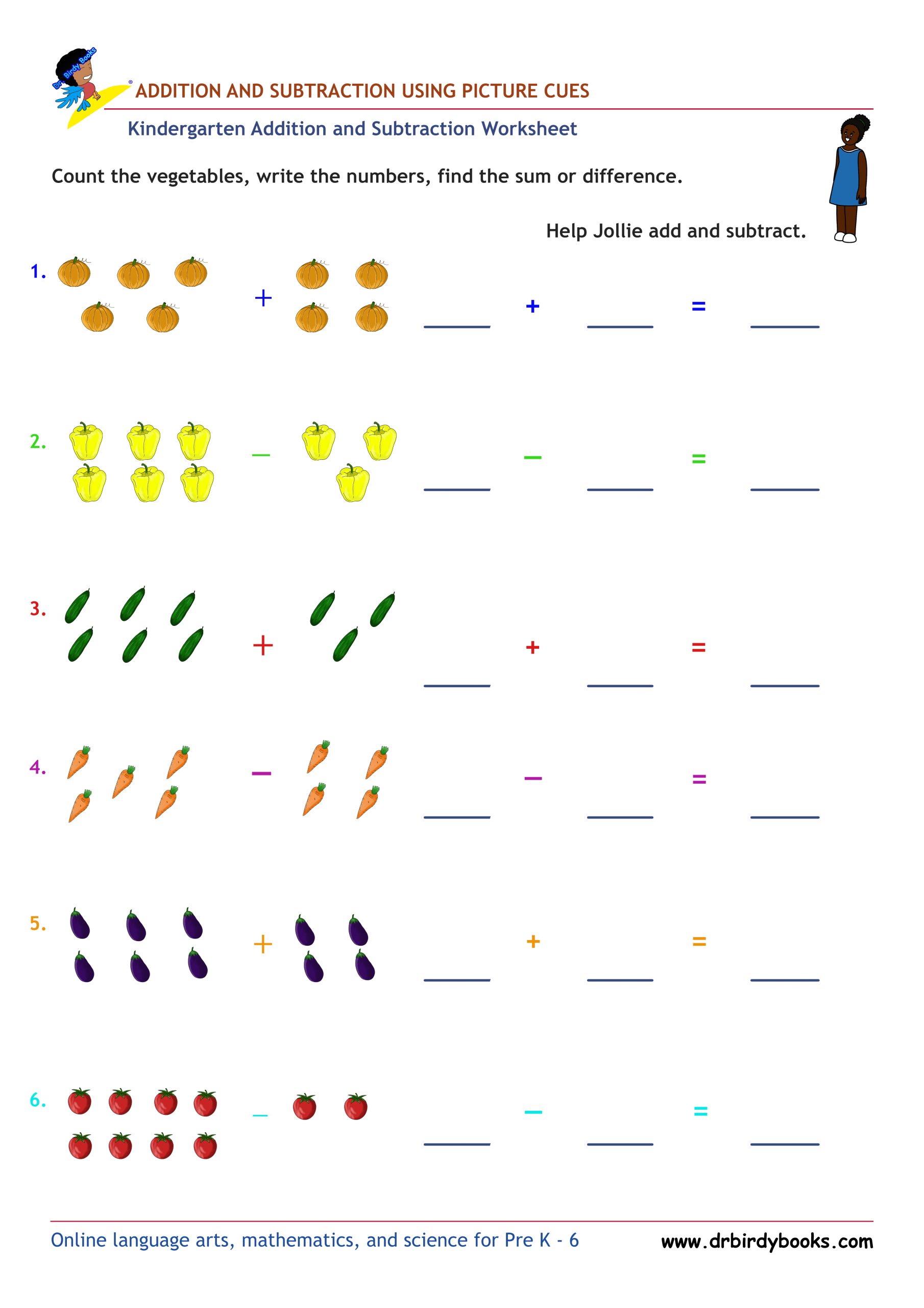 This interactive Kindergarten worksheet helps students practice addition and subtraction within 10 using engaging pictures, making math fun and accessible!